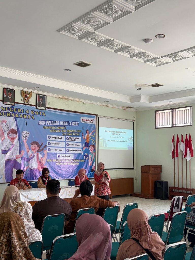 Fokus Utama: Pendampingan Belajar di Rumah kepala SMP Negeri 4 Kota Surakarta, Ibu Diah Pitaloka Handriani, S.Pd., M.Pd., dalam sambutannya menekankan bahwa keberhasilan siswa tidak hanya ditentukan oleh proses belajar di kelas, tetapi juga dukungan moral dan pengawasan dari orang tua di rumah.”Kami ingin memastikan anak-anak mendapatkan pendampingan yang maksimal. Melalui pertemuan ini, kami berharap orang tua dapat memantau pola belajar anak sehingga ada keselarasan antara program yang kami jalankan di sekolah dengan lingkungan di rumah,” ujar Ibu Diah Pitaloka.